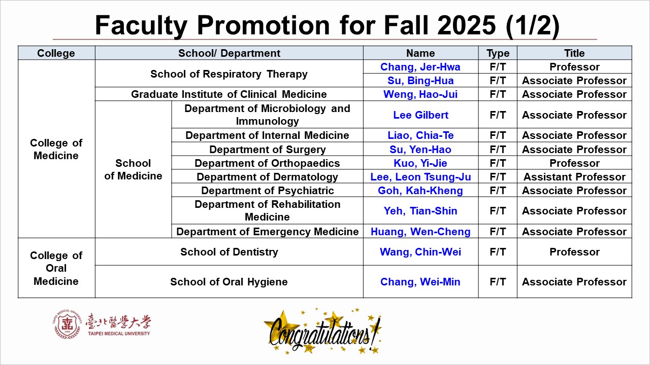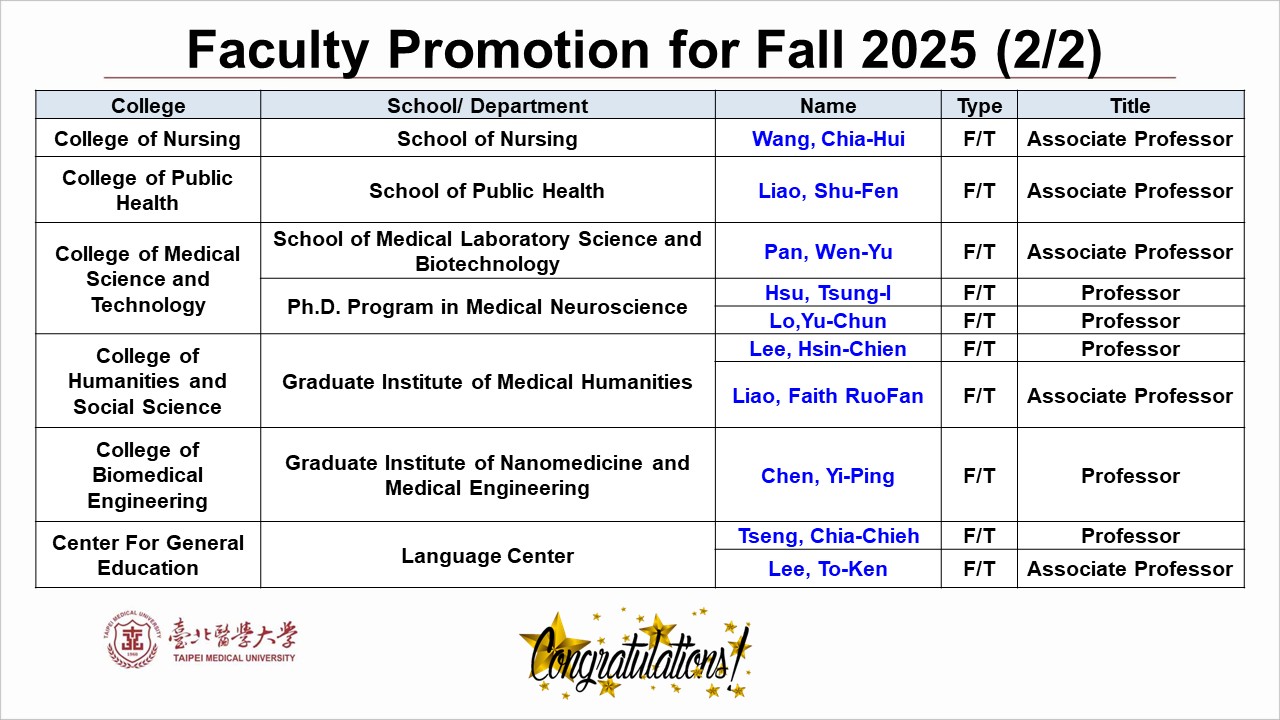 Faculty Promotion for Fall 20252025-12-03/in Latest News /wp-content/uploads/2024/08/logo3.png 0 0 cmbyhlin /wp-content/uploads/2024/08/logo3.png cmbyhlin2025-12-03 15:47:242025-12-03 15:58:28Faculty Promotion for Fall 2025